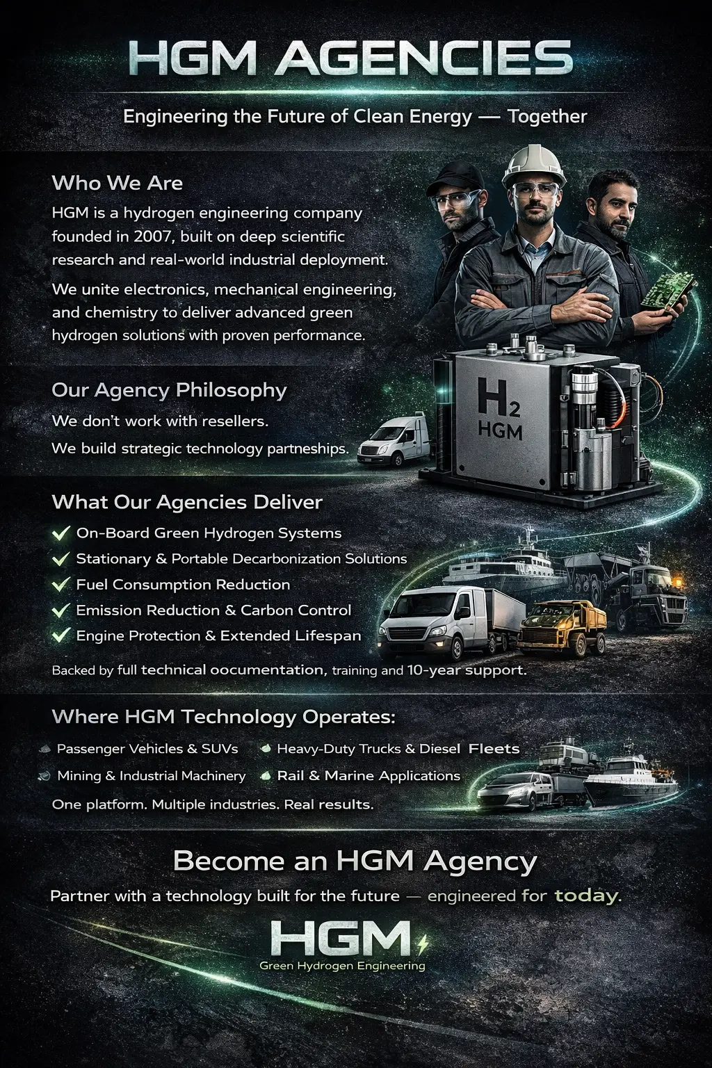Artboard 1 Contact Us Click the button below to contact us for questions, support, or inquiries about our services and solutions. We are here to help and guide you with any requests you may have quickly and efficiently. Learn more Home Pioneering Green Hydrogen Solutions Clean energy innovation since 2007 Hydrogen systems for industry and mobility Reducing emissions and fuel consumption Building a sustainable, zero-carbon future Learn more Articles Click the button below to read our articles covering insights, updates, and useful information for everyone. Discover helpful tips, trends, and best practices to improve knowledge and get inspired in your work. Learn more About Us Click the button below to read about our vision, mission, and core values guiding all we do daily. Discover the long-term goals we aim to achieve to improve services and positively impact the community. Learn more Products Click the button below to explore our products, designed for quality and innovation in every category we offer. You will discover features, options, and benefits crafted to meet your needs and enhance your experience with us. Learn more Cooperation Click the button below to explore our cooperation opportunities and learn about our business plans available for download and easy implementation. Discover ways to collaborate, partner, and achieve shared goals efficiently. Learn more Agencies Click the button below to see our agencies around the world and learn how we provide quality services in regions globally. See offices, partnerships, and locations strengthening our network. Learn more